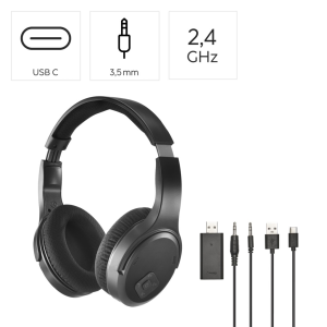 - bezdrátová sluchátka přes uši (over-ear) pro nerušený domácí poslech bez kabelů - dvě možnosti spojení: 1. digitální přenos 2,4 GHz z USB vysílače bez rušivého šumu, bez zpoždění signálu a bez nutnosti …