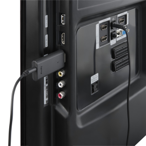 • USB vysílač se připojí do USB zásuvky na TV a jack kabelm propojí s audio výstupem TV