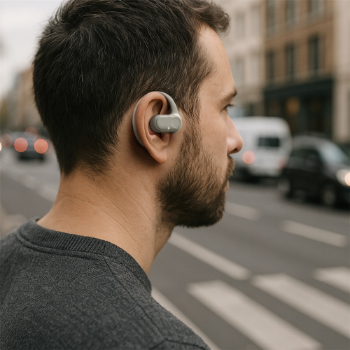 • zcela bezdrátová sluchátka s otevřenou konstrukcí a klipem za ucho