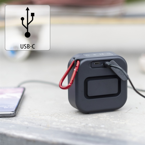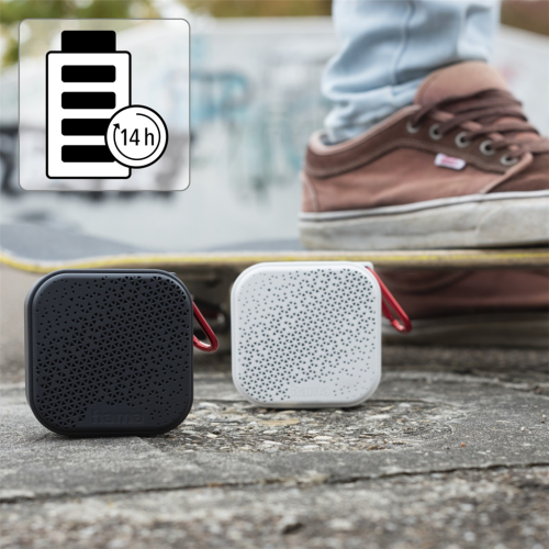 • moderní, voděodolný outdoorový Bluetooth reproduktor s karabinkou, pro přehrávání hudby z telefonu, tabletu nebo notebooku, pro perfektní hudební zážitek vždy a všude