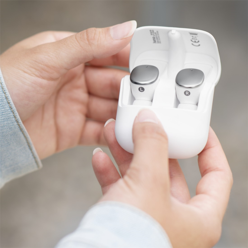 • zcela bezdrátová sluchátka do uší (true wireless) pro poslech hudby a telefonování přes Bluetooth