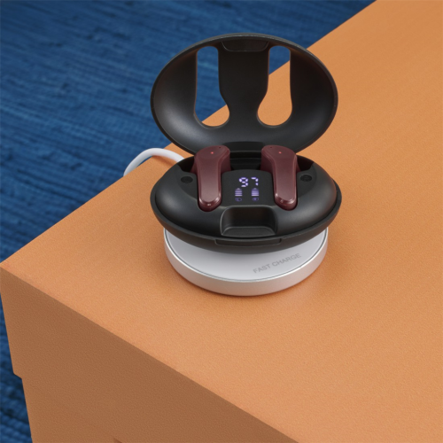 • LED displej uvnitř pouzdra zobrazuje nabití pouzdra v procentech a průběhu nabíjení sluchátek