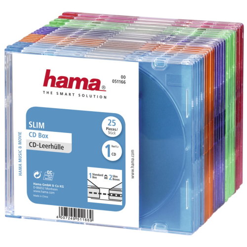 Hama CD Slim Box, obal na 1 cd/dvd, mix barev, balení 25 ks (cena za balení)