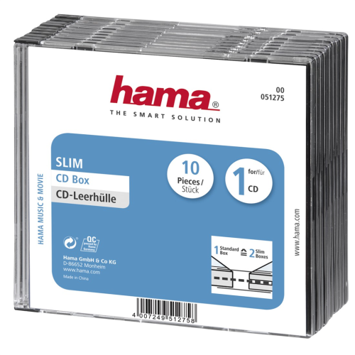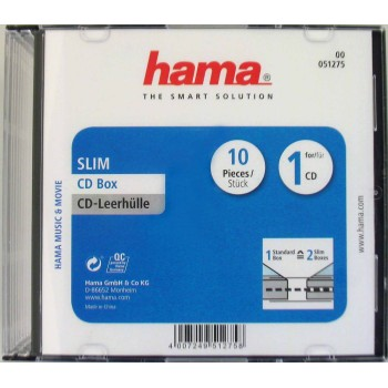 Hama CD Slim Box, obal na 1 cd/dvd, průhledný/černý, balení 10 ks (cena za balení)