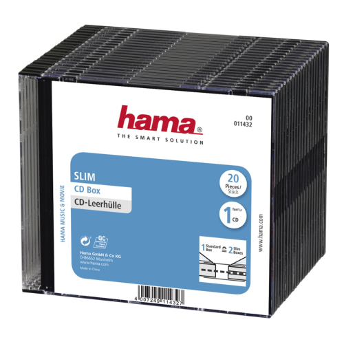 Hama CD Slim Box, obal na 1 cd/dvd, průhledný/černý, balení 20 ks (cena za balení)