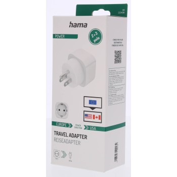 - kompaktní zásuvkový adaptér pro připojení spotřebičů s evropskou vidlicí do zásuvky amerického typu - vhodné pro zásuvky typu B (USA, Kanada, Střední a Jižní Amerika, Japonsko, Taiwan, Filipíny, Saudská …