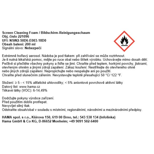 Hama čisticí pěna na obrazovky 200 ml, s utěrkou, pro domov i kancelář