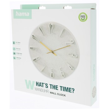 Hama Corfu, nástěnné hodiny, průměr 30 cm, 3D číslice, tiché, z 20% pšeničné slámy, béžové