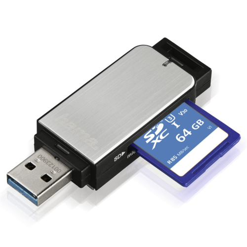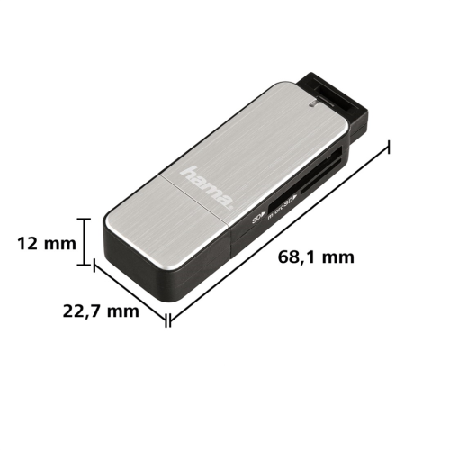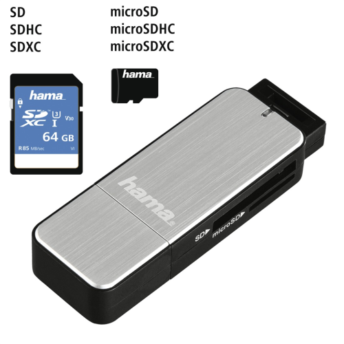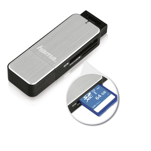 Hama čtečka karet USB 3.0 SD/microSD, stříbrná