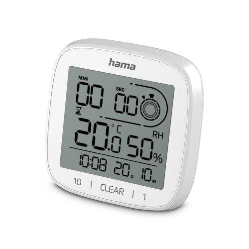 Hama Cyprus, digitální hodiny do koupelny, přísavka, datum, teplota, vlhkost, časovač, bílé