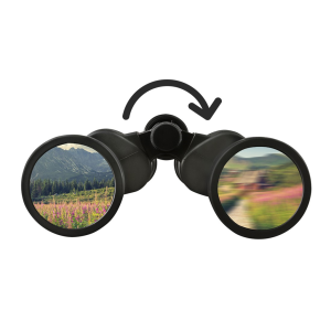 dioptrická korekce ±3 na pravém okuláru umožňuje ostré vidění i uživatelům s brýlemi