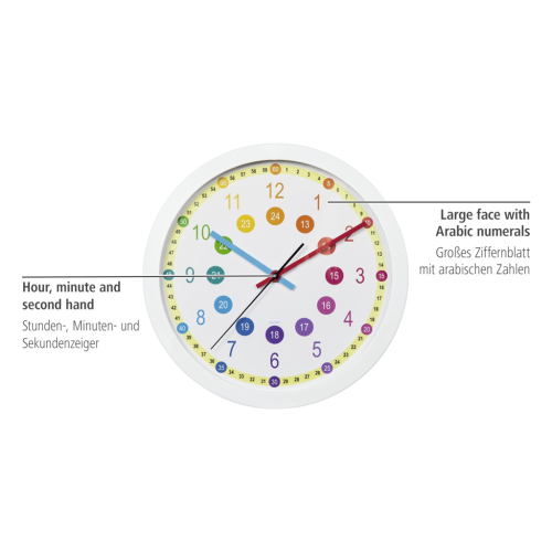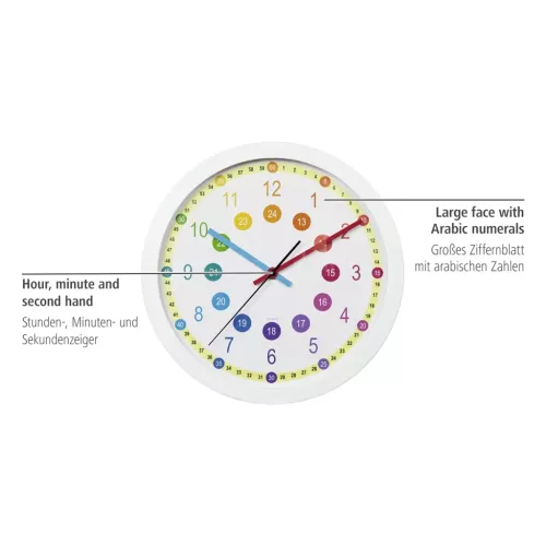 Hama Easy Learning dětské nástěnné hodiny, průměr 30 cm, tichý chod