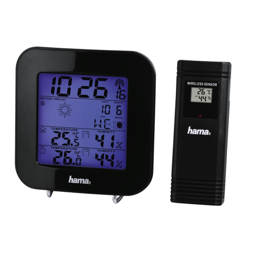 - digitální meteostanice (základna + bezdrátový senzor; 433 MHz) - zobrazení venkovní a vnitřní teploty a vlhkosti vzduchu, předpovědi počasí, fáze měsíce, data a času - hodiny řízené rádiovým signálem …