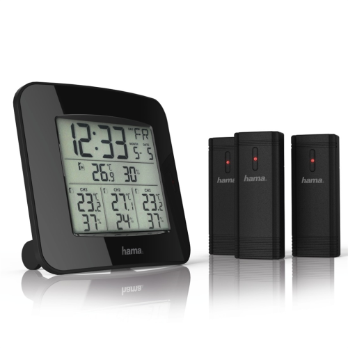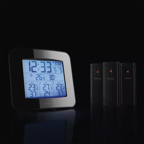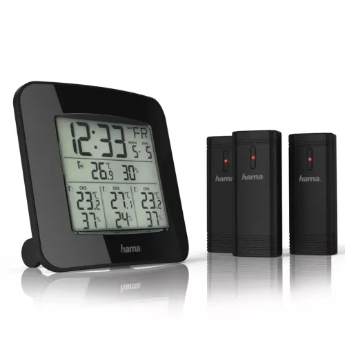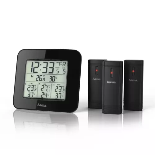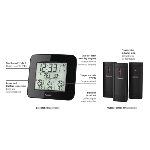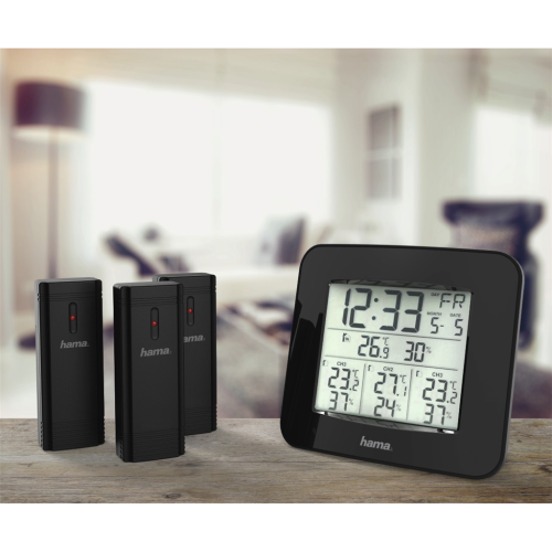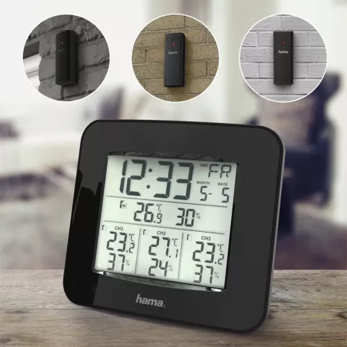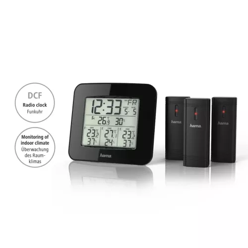 - 4dílný set složený se základny a tří bezdrátových senzorů - zobrazení času, data, dne v týdnu, teploty a vlhkosti vzduchu - vhodná pro sledování teplotních a vlhkostních podmínek uvnitř: hodnoty ze …