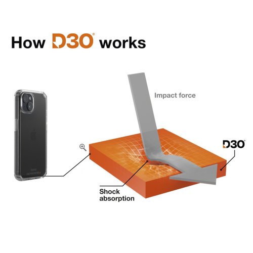 D3O® je unikátní inovativní materiál, který je téměř nezničitelný. Tento materiál zaručí i při minimální tloušťce krytu maximální ochranu zařízení při nárazech, pádech a úderech, a to dokonce i při pádu z výšky 3,5 m. Zároveň ale vůbec neovlivní používání a ovládání zařízení. Tvrdost 4H zaručuje mimořádnou odolnost vůči poškrábání. Díky použitým materiálům zůstane kryt stále čirý a nikde nezežloutne, jak se to stává u běžných krytů.