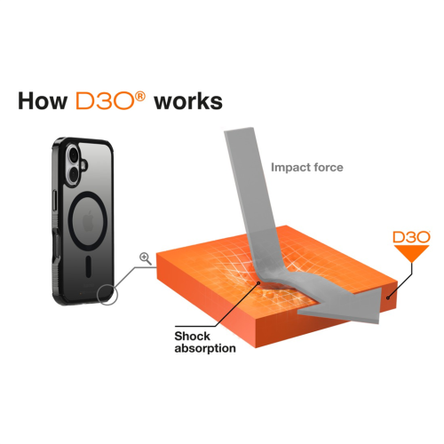 D3O® je unikátní inovativní materiál, který je téměř nezničitelný. Tento materiál zaručí i při minimální tloušťce krytu maximální ochranu zařízení při nárazech, pádech a úderech, a to dokonce i při pádu z výšky 3,5 m. Zároveň ale vůbec neovlivní používání a ovládání zařízení. Tvrdost 4H zaručuje mimořádnou odolnost vůči poškrábání.