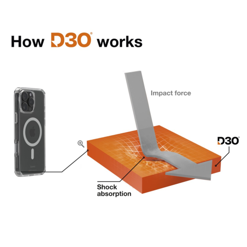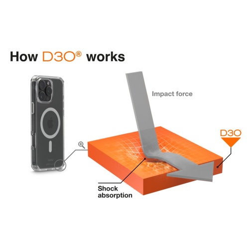 D3O® je unikátní inovativní materiál, který je téměř nezničitelný. Tento materiál zaručí i při minimální tloušťce krytu maximální ochranu zařízení při nárazech, pádech a úderech, a to dokonce i při pádu z výšky 3,5 m. Zároveň ale vůbec neovlivní používání a ovládání zařízení. Tvrdost 4H zaručuje mimořádnou odolnost vůči poškrábání. Díky použitým materiálům zůstane kryt stále čirý a nikde nezežloutne, jak se to stává u běžných krytů.