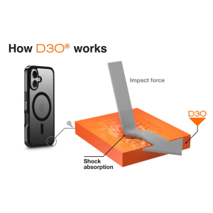 D3O® je unikátní inovativní materiál, který je téměř nezničitelný. Tento materiál zaručí i při minimální tloušťce krytu maximální ochranu zařízení při nárazech, pádech a úderech, a to dokonce i při pádu z výšky 3,5 m. Zároveň ale vůbec neovlivní používání a ovládání zařízení. Tvrdost 4H zaručuje mimořádnou odolnost vůči poškrábání.