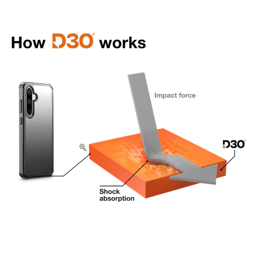 D3O® je unikátní inovativní materiál, který je téměř nezničitelný. Tento materiál zaručí i při minimální tloušťce krytu maximální ochranu zařízení při nárazech, pádech a úderech, a to dokonce i při pádu z výšky 3,5 m. Zároveň ale vůbec neovlivní používání a ovládání zařízení. Tvrdost 4H zaručuje mimořádnou odolnost vůči poškrábání.