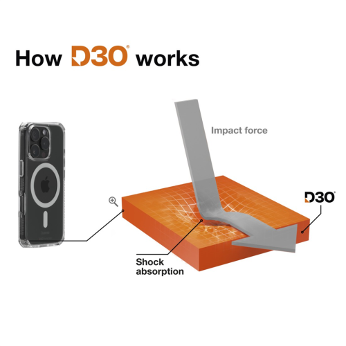 D3O® je unikátní inovativní materiál, který je téměř nezničitelný. Tento materiál zaručí i při minimální tloušťce krytu maximální ochranu zařízení při nárazech, pádech a úderech, a to dokonce i při pádu z výšky 3,5 m. Zároveň ale vůbec neovlivní používání a ovládání zařízení. Tvrdost 4H zaručuje mimořádnou odolnost vůči poškrábání. Díky použitým materiálům zůstane kryt stále čirý a nikde nezežloutne, jak se to stává u běžných krytů.