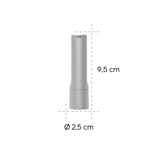 průměr: 2,5 cm, délka: 9,5 cm