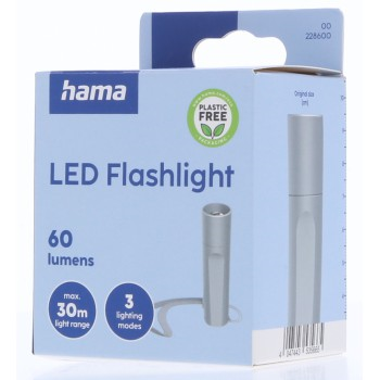 Hama FL60, LED svítilna, hliníková, 60 lm / 30 m, 3 režimy svícení, poutko na ruku, vč. baterie