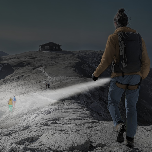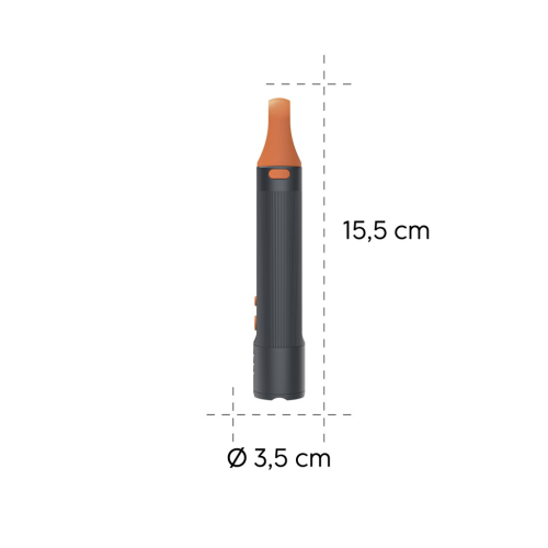 čtyři světelné režimy: velmi jasné světlo (350 lm / 230 m), jasné světlo (200 lm / 180 m), tlumené světlo (100 lm / 130 m), blikání a SOS