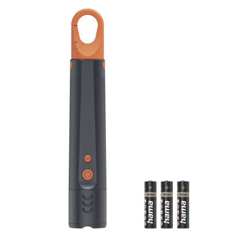 Hama FLX350, LED svítilna, hliníková, 350 lm / 230 m, 4 režimy+SOS, IP44, zoom, karabinka, baterie