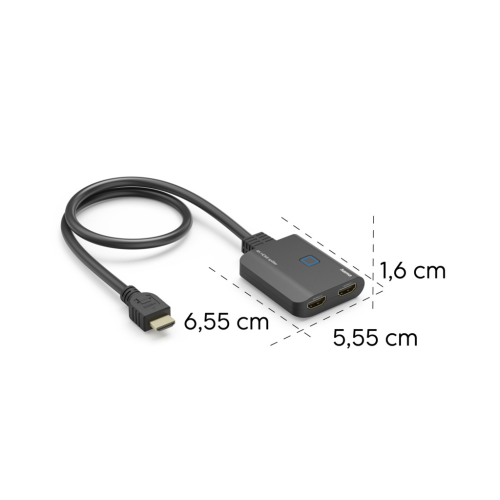 - kabelový HDMI rozbočovač, 1x HDMI vidlice (vstup), 2x HDMI zásuvka (výstupy) - pro zobrazení signálu z jednoho zdroje (např. přehrávač, herní konzole) na dvou zobrazovacích zařízeních současně …