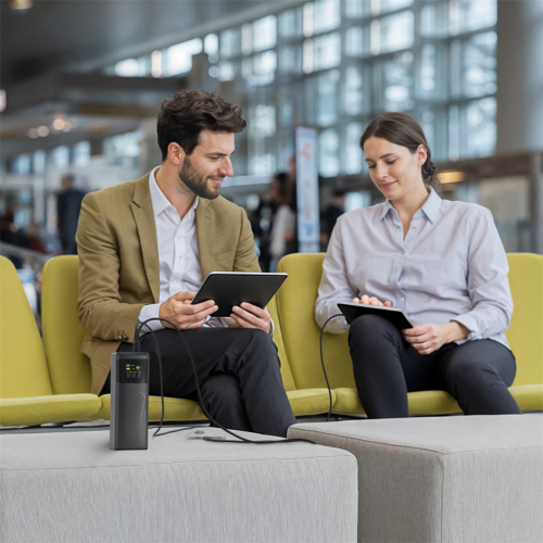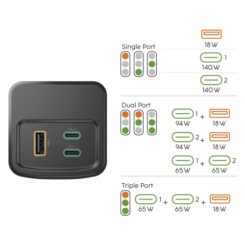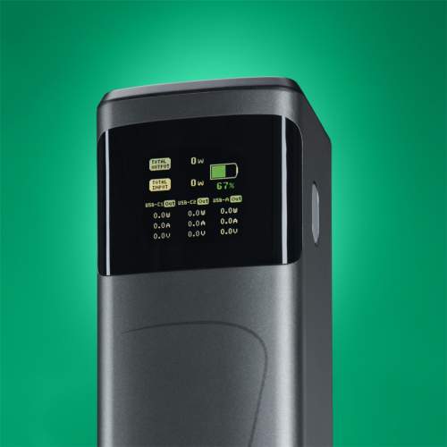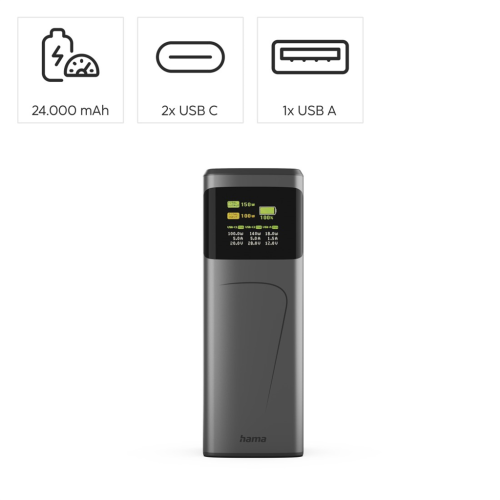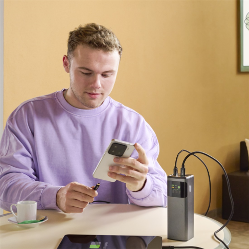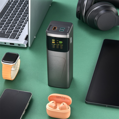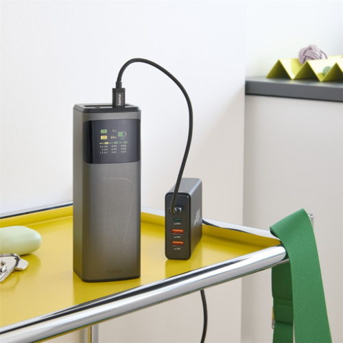 Poznámka: Powerbanka má celkový výstupní výkon max. 150 W. Připojíte-li dvě zařízení k oběma USB-C zásuvkám, výkon každé zásuvky bude 65 W. Připojíte-li zařízení ke všem třem zásuvkám, výkon každé USB-C zásuvky bude 65 W a USB-A zásuvky 18 W.