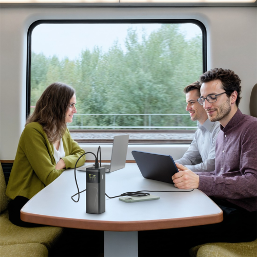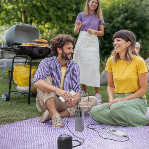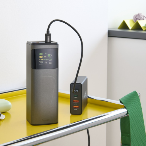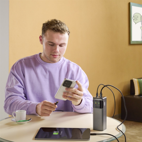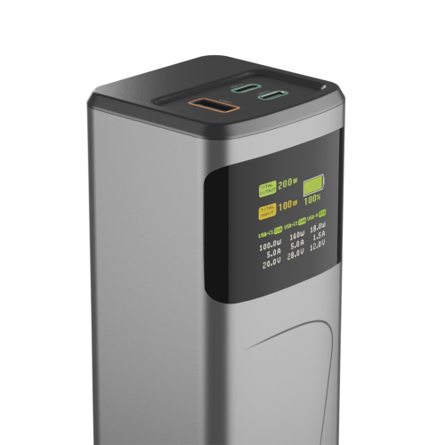 Poznámka: Powerbanka má celkový výstupní výkon max. 200 W. Připojíte-li dvě zařízení k oběma USB-C zásuvkám, výkon každé zásuvky bude 100 W. Připojíte-li zařízení ke všem třem zásuvkám, výkon se rozdělí na 100 W pro jednu USB-C zásuvku, 65 W pro druhou USB-C a 18 W pro USB-A zásuvku.