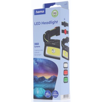 Hama HL350, LED čelovka, COB, 350 lm / 60 m, IP44, SOS píšťalka, baterie