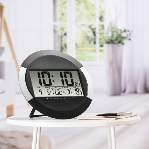- nástěnné hodiny řízené rádiovým signálem DCF (automatické nastavení času podle nejpřesnějších hodin světa) - digitální zobrazení času, data, dne v týdnu, vnitřní teploty a fáze měsíce - možnost manuálního …