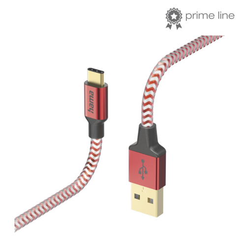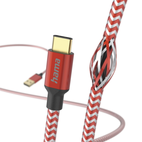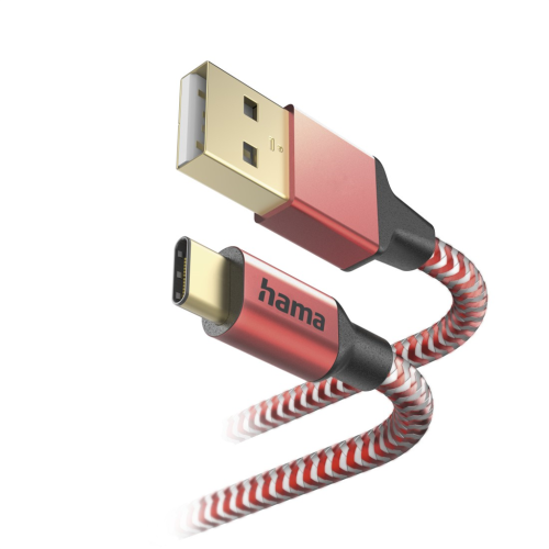 Hama kabel Reflective USB-C 2.0 typ A-C 1,5 m, červený