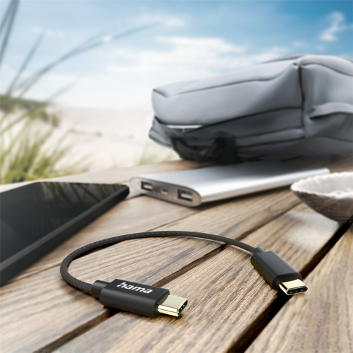 Hama kabel USB-C 2.0 typ C-C 0,2 m, opletený, černý