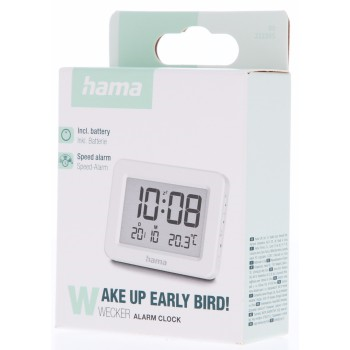 Hama Kos, digitální budík, s datem a teplotou, bílý
