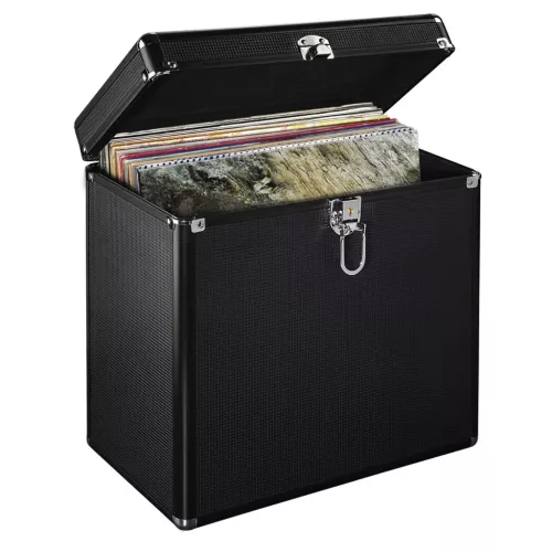 Hama kufřík na 50 gramofonových desek (vinyl/LP), hliníkový vzhled, černý