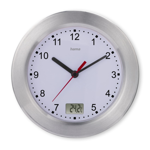 Hama Mauritius, hodiny do koupelny, průměr 17 cm, teploměr, přísavky, tichý chod, hliníkové