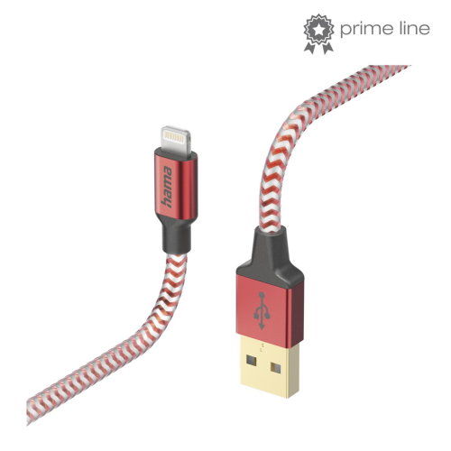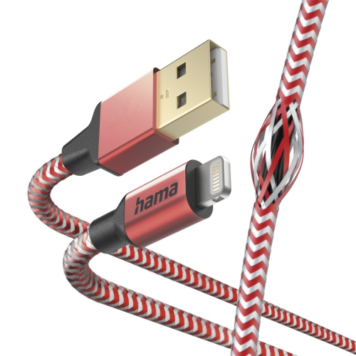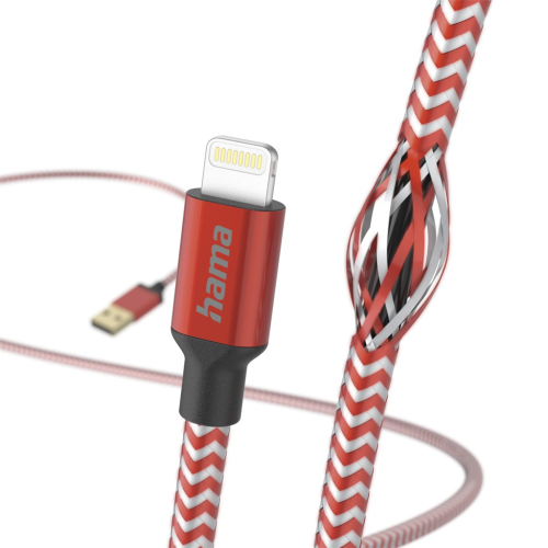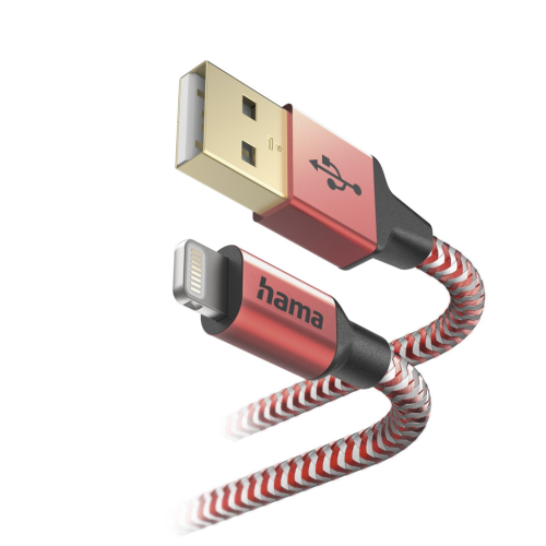 Hama MFi USB kabel Reflective pro Apple, USB-A Lightning 1,5 m, červený