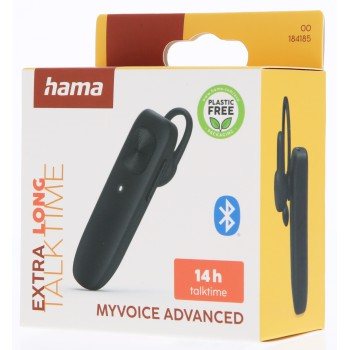 Hama MyVoice Advanced, Bluetooth headset mono, pro 2 zařízení, hlasový asistent (Siri, Google)