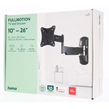 - pohyblivý držák pro LCD obrazovky s úhlopříčkou cca 10 až 26 palců (25 až 66 cm) - podpora VESA (rozteč závitů): 75x75 a 100x100 - max. velikost upevňovacích závitů na TV: M6 - konstrukce: 2 nosná …