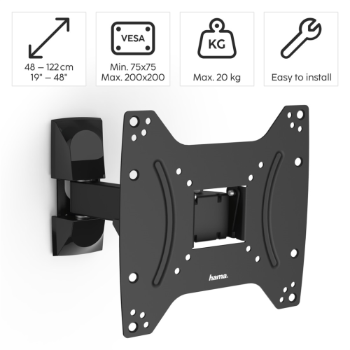 - pohyblivý držák pro LCD obrazovky s úhlopříčkou cca 19 až 48 palců (48 až 122 cm) - podpora VESA (rozteč závitů): 75x75 až 200x200 - max. velikost upevňovacích závitů na TV: M8 - konstrukce: 1 nosné …