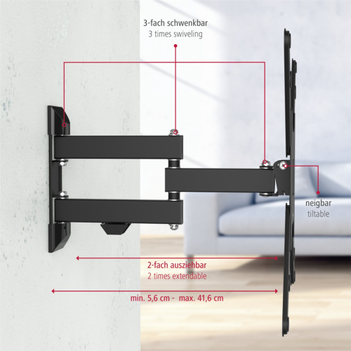 Hama nástěnný držák TV, 400x400, pohyblivý, 25 kg