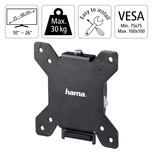 - kompaktní držák pro LCD obrazovky s úhlopříčkou cca 25 až 66 cm (10" až 26") - podpora VESA (rozteč závitů): 75x75 a 100x100 - max. velikost upevňovacích závitů na TV: M5 - rozsah naklápění: +10/-15 …