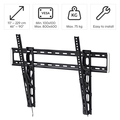 naklápěcí držák pro ploché obrazovky s úhlopříčkou cca 46" až 100" (117 až 254 cm) VESA max. 800x600, nastavitelná ramena pro jakoukoliv menší rozteč závitů velmi plochý profil, snadné zavěšení TV pomocí …