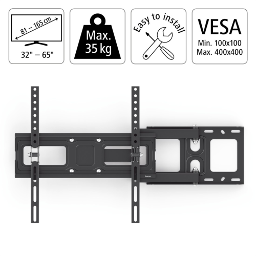 - pohyblivý držák pro TV obrazovky s úhlopříčkou cca 32 až 65 palců (81 až 165 cm) - podpora VESA (rozteč závitů): 100x100 až 400x400 - max. velikost upevňovacích závitů na TV: M8 - konstrukce: 1 dvojité …