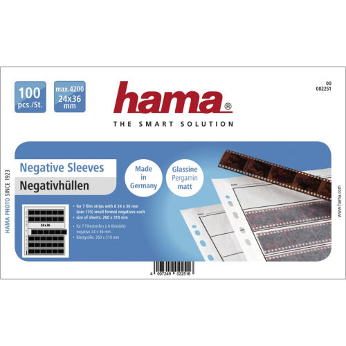 Hama obal na negativ, 24x36 mm, pergamen matný, 260x310 mm,100 ks