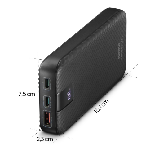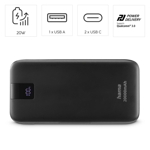 Hama PD 20 powerbanka, 20000 mAh, 3 výstupy: 2x USB-C, 1x USB-A, LED displej, PD, Qualcomm