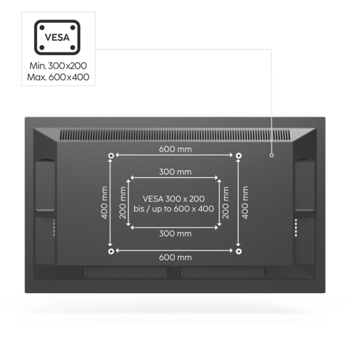 • podpora VESA (rozteč závitů): 300x200 až 600x400