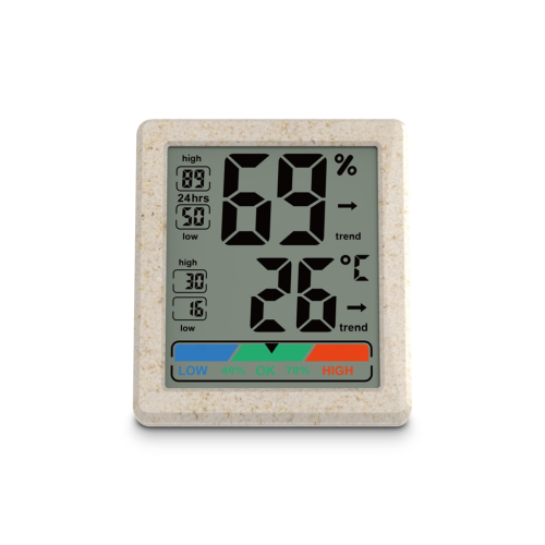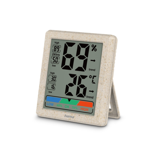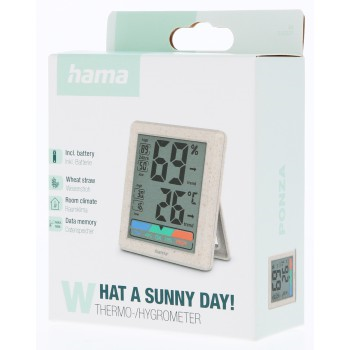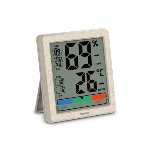 Hama Ponzo, digitální teploměr/vlhkoměr, vnitřní, z pšeničné slámy a bio plastu, béžový